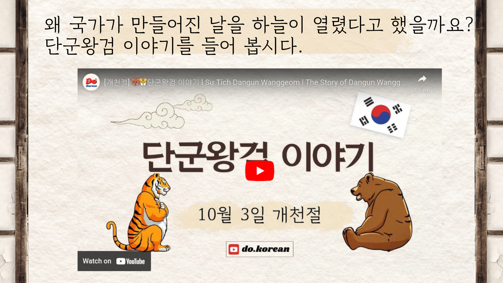 개천절을 앞두고 한글학교에서 계기교육을 실시하고자 합니다.