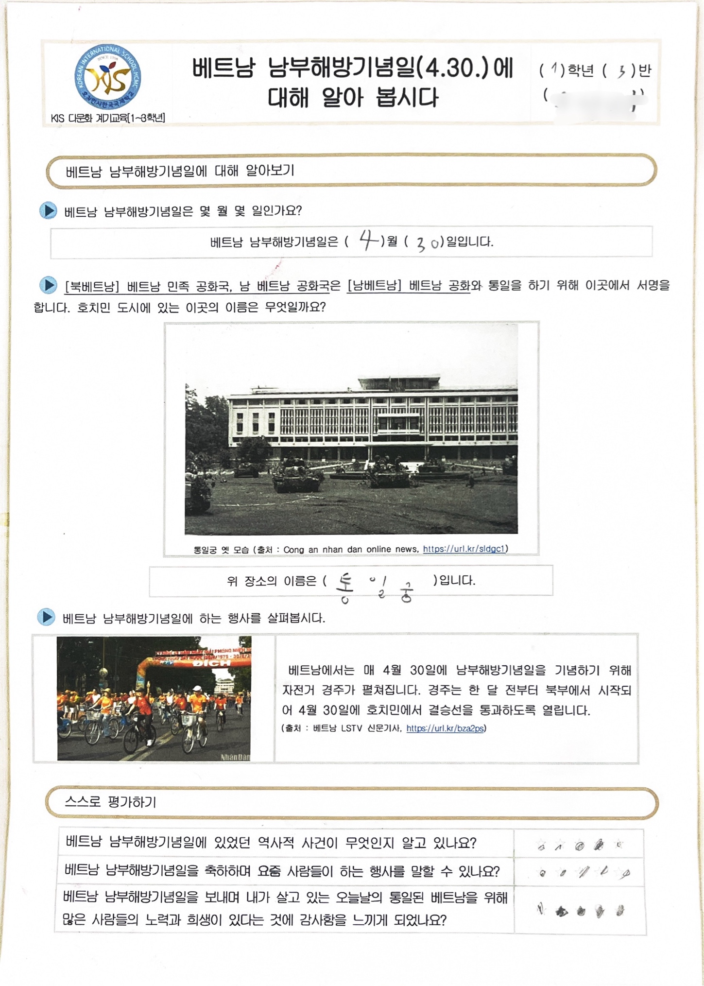 <베트남 남부해방기념일 계기 교육 :베트남 남부해방기념일에 대해 알아보고 통일된 베트남을 위해 힘쓴 사람들에게 감사함을 가져봅시다.">
