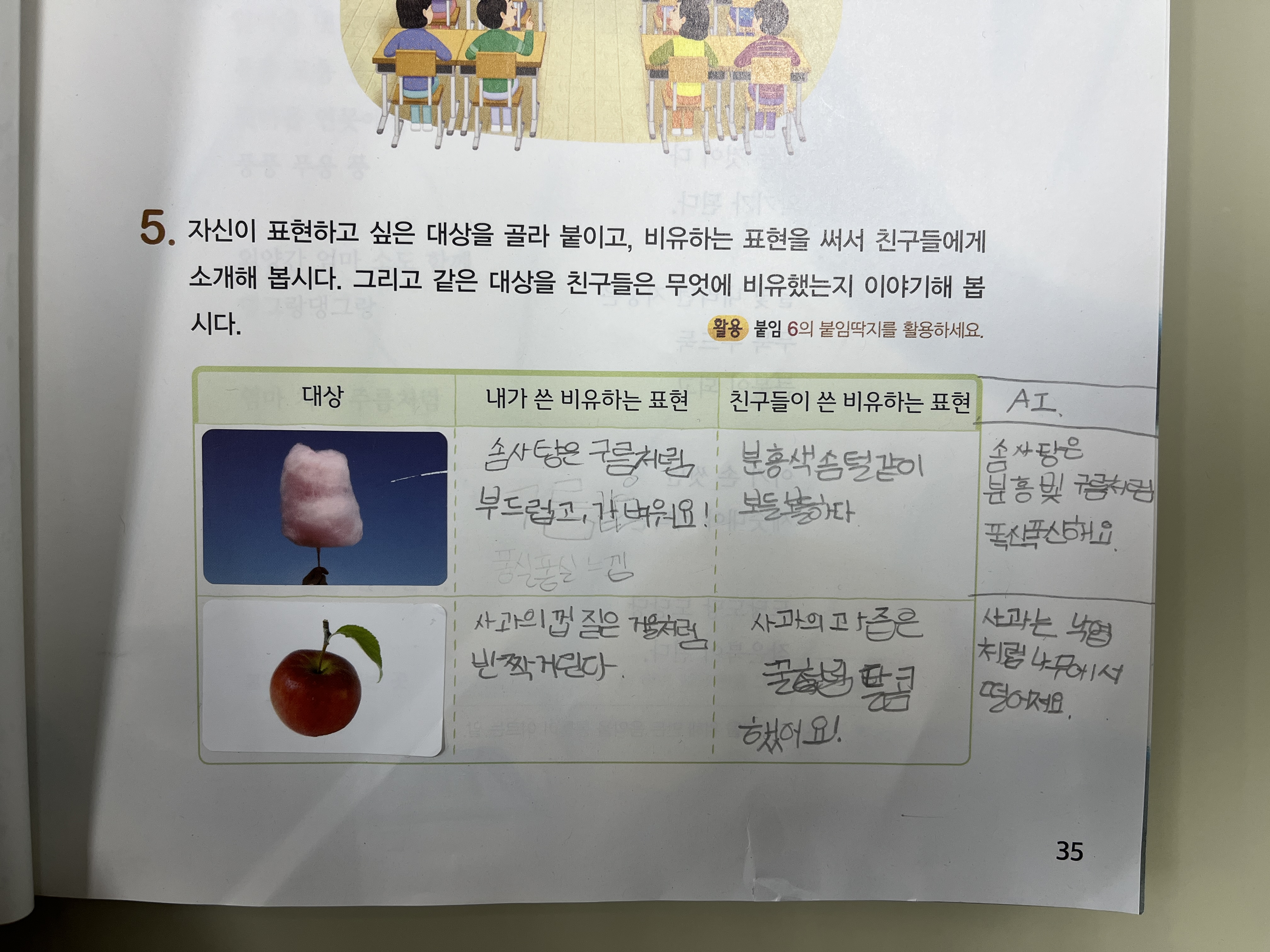 3. 매직스쿨 AI로 비유하는 표현 찾기(교과서 35쪽)