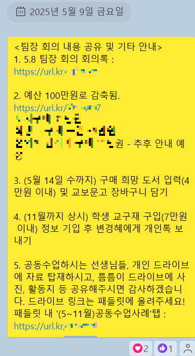 해당 회의 내용과 이후 예산 사용과 관련해서는 연구회 선생님들께 공유드렸다.