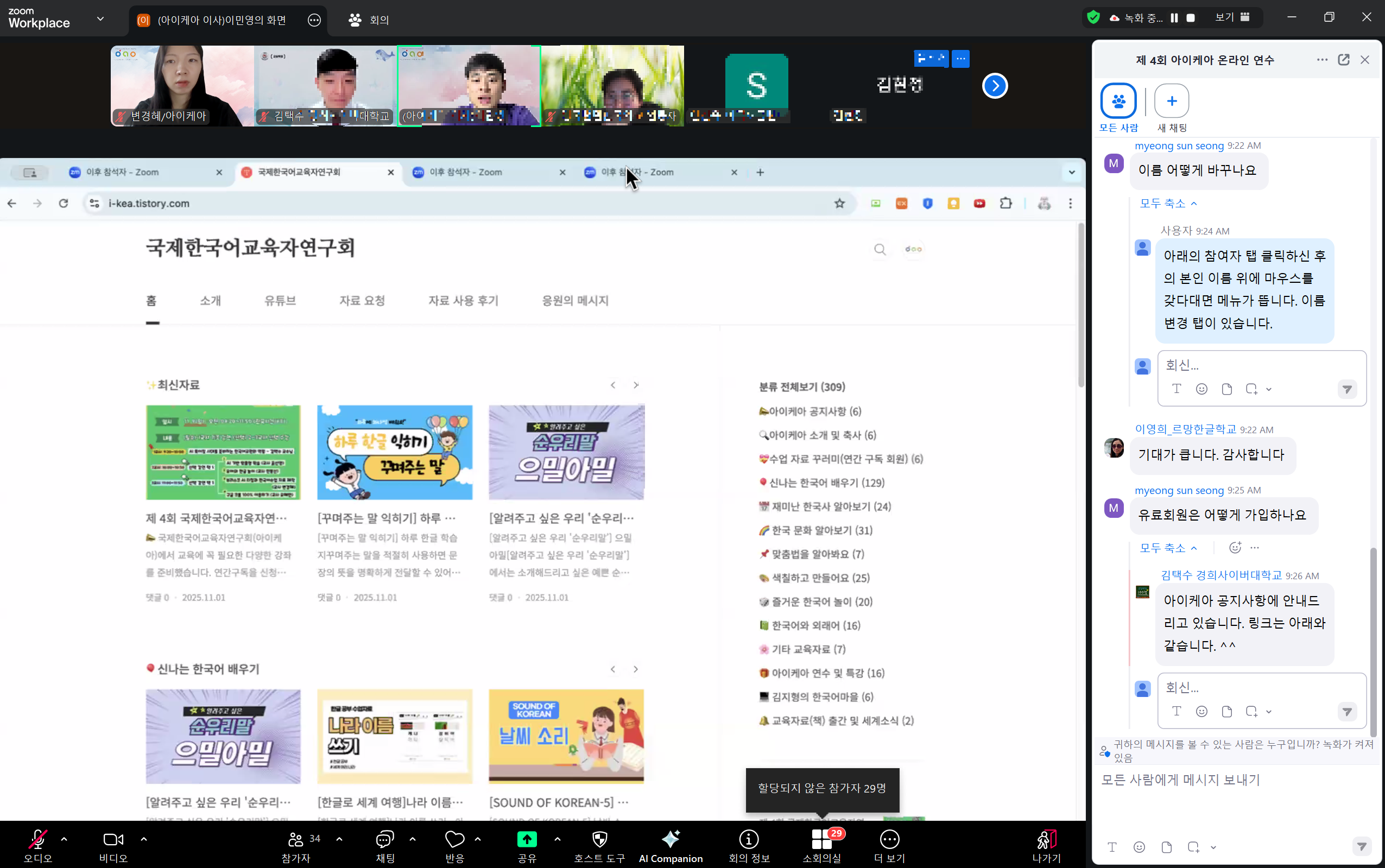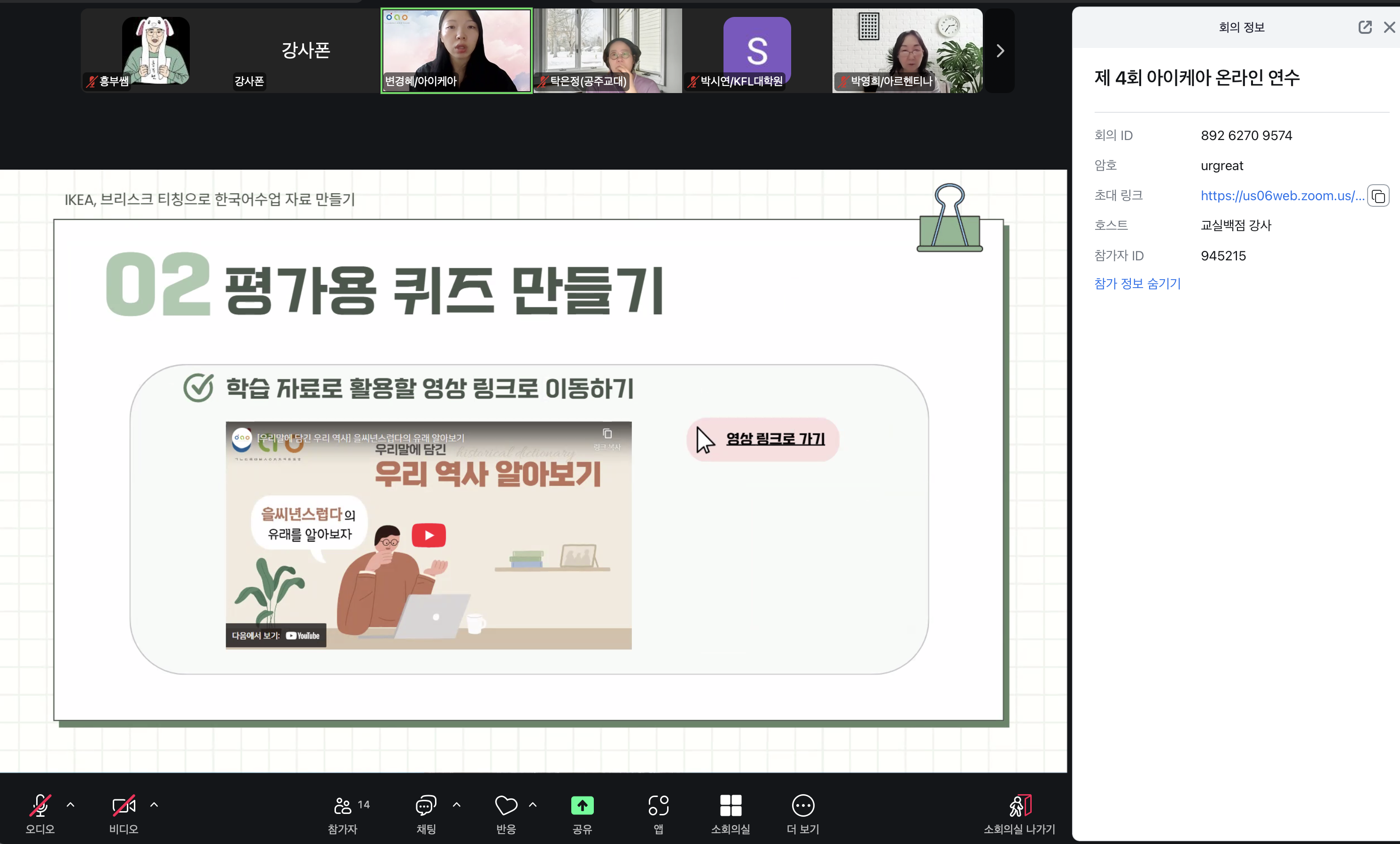강의 시작 전에 간단하게 인사를 나누면서 각자 계신 현지 시간을 여쭈었는데 새벽 2시에 듣고 계신 선생님도 있으실 정도로 세계 한글학교 선생님들의 열정을 느낄 수 있었다.