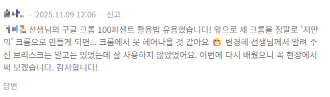 다음 강의 준비나 수업 개발에 도움을 받을 수 있도록 강의 후기도 부탁드렸는데, 이렇게 따뜻하게 글을 남겨주셨다.