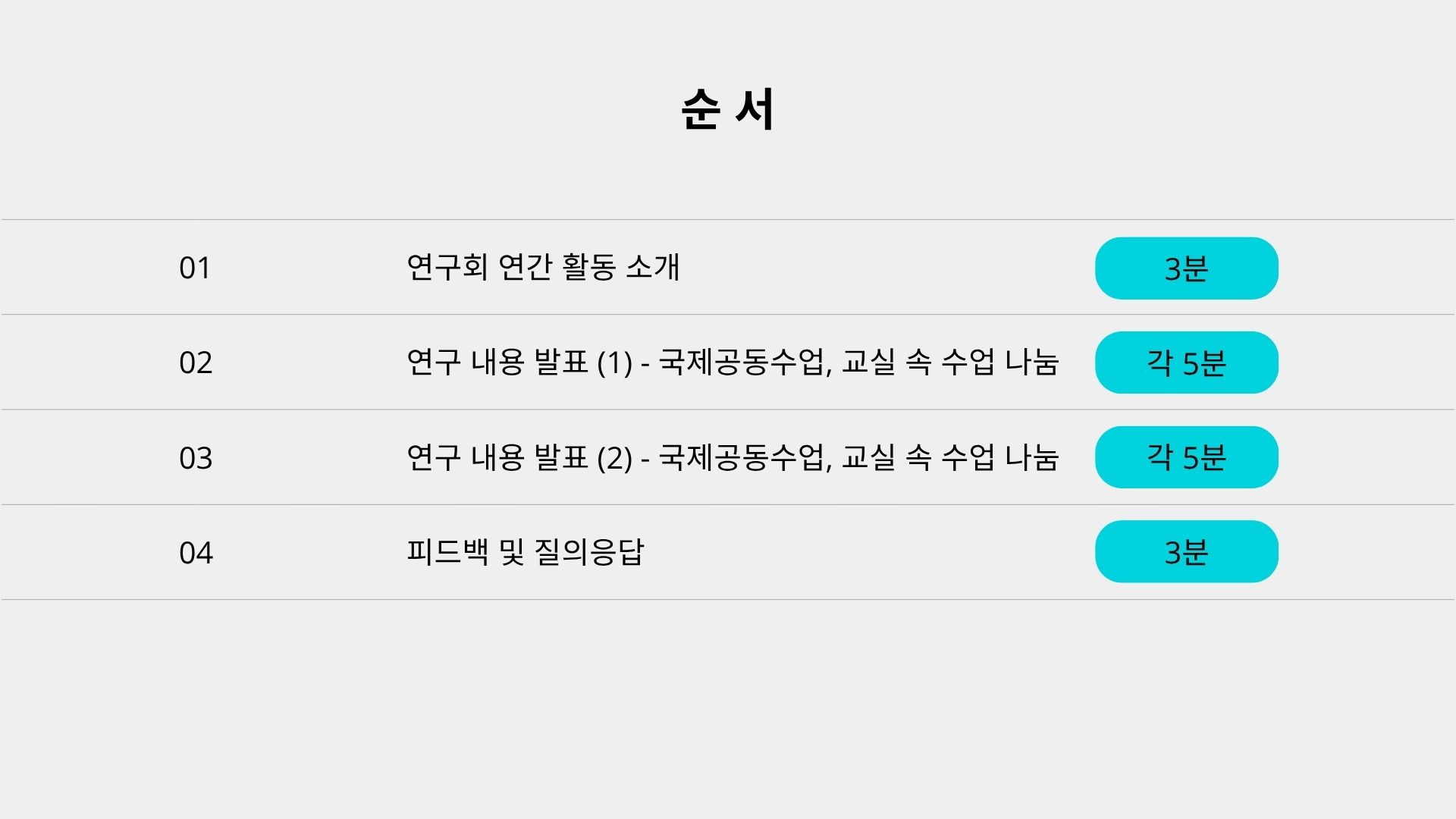 주제: 국제공동수업 수업 사례 나눔 및 연구 발표 나눔
