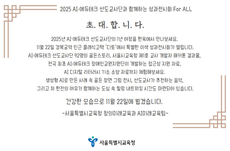 | 2025 강서양천 초등 AI선도교사, 도전교사 성과나눔회 (0) | 2025.12.02 |