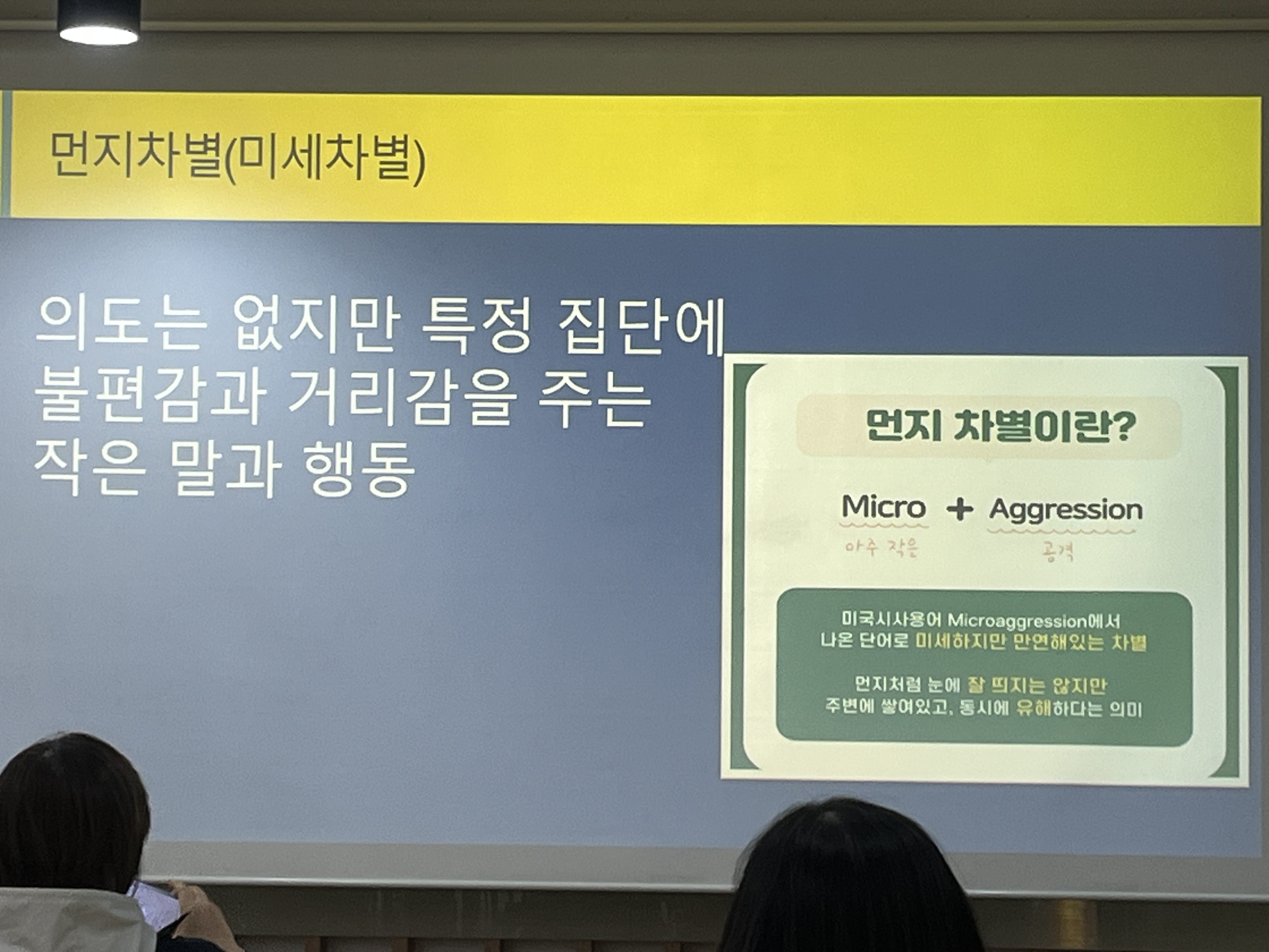 먼지차별(미세차별) : 의도는 없지만 특정 집단에 불편감과 거리감을 주는 작은 말과 행동