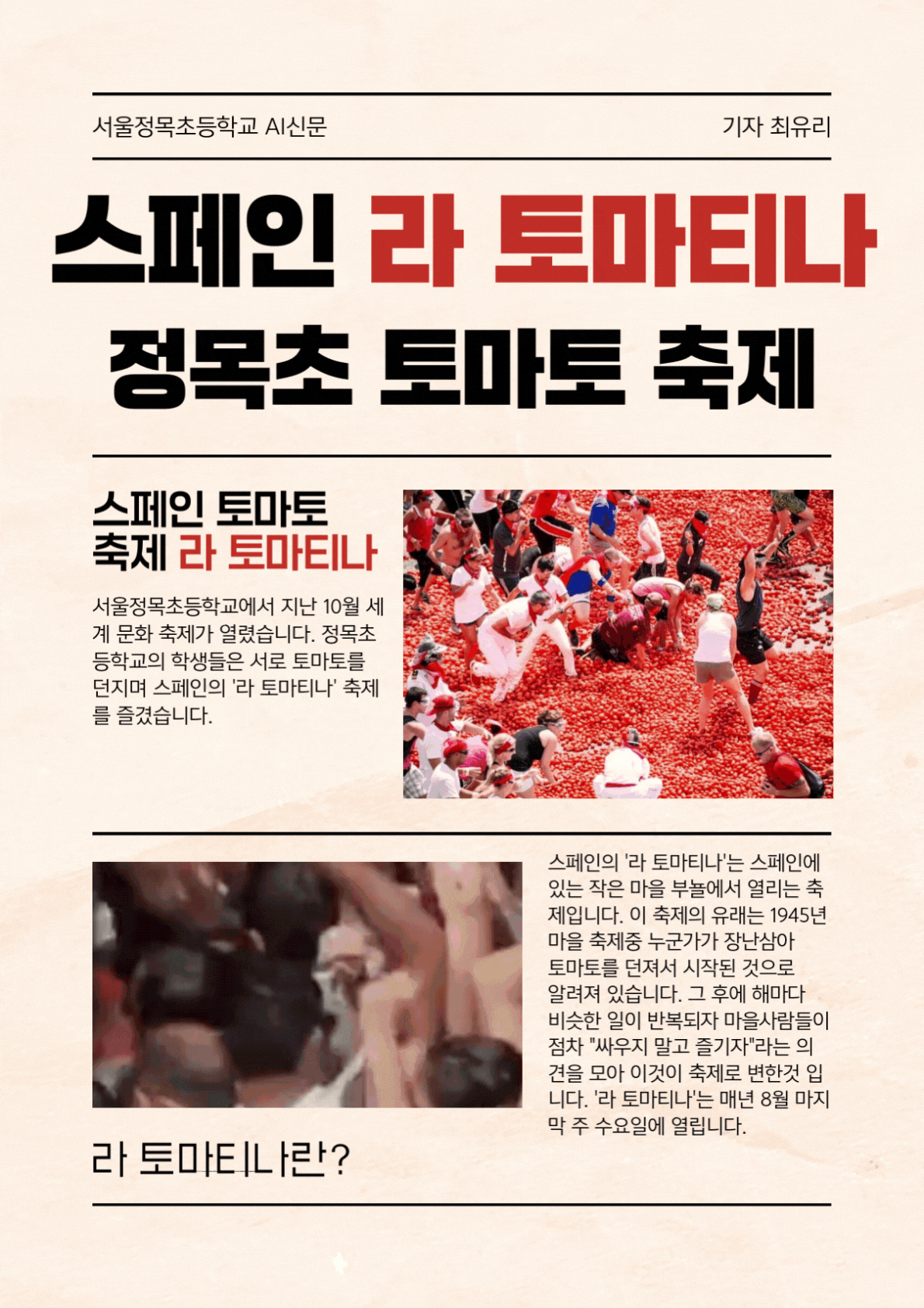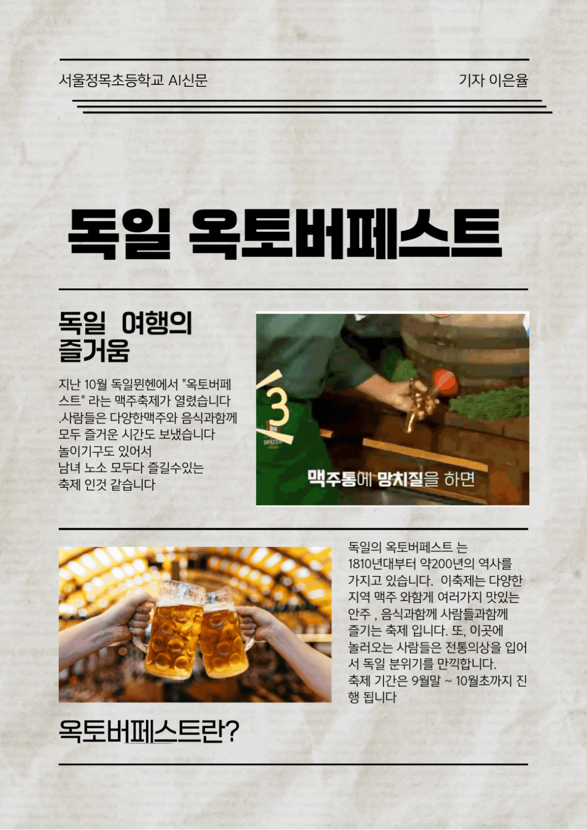 올해 동아리로 운영 중인 AI 웹툰부에서는 그림, 사진을 이용한 다양한 작품을 만들고 있다. 1학기에는 만화를 만드는 직접적인 활동을 했다면 2학기에는 그림, 사진 등을 이용해 만들 수 있는 작품을 만들어보고 있다. 이번 주제는 움직이는 지구촌 신문 만들기이다.