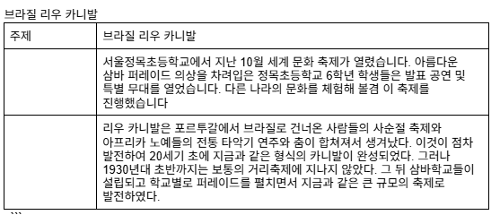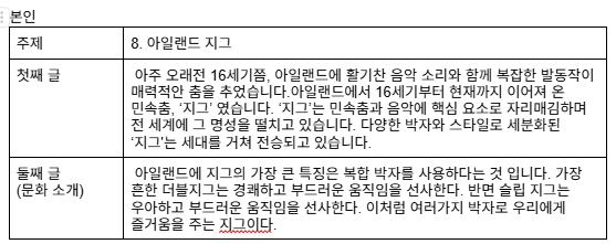 아래 내용은 교사가 미리 만들어놓은 틀을 참고해서 내용을 작성할 수 있도록 워드 파일을 공유했다. 학생은 사본 만들기를 해서 활용했다.