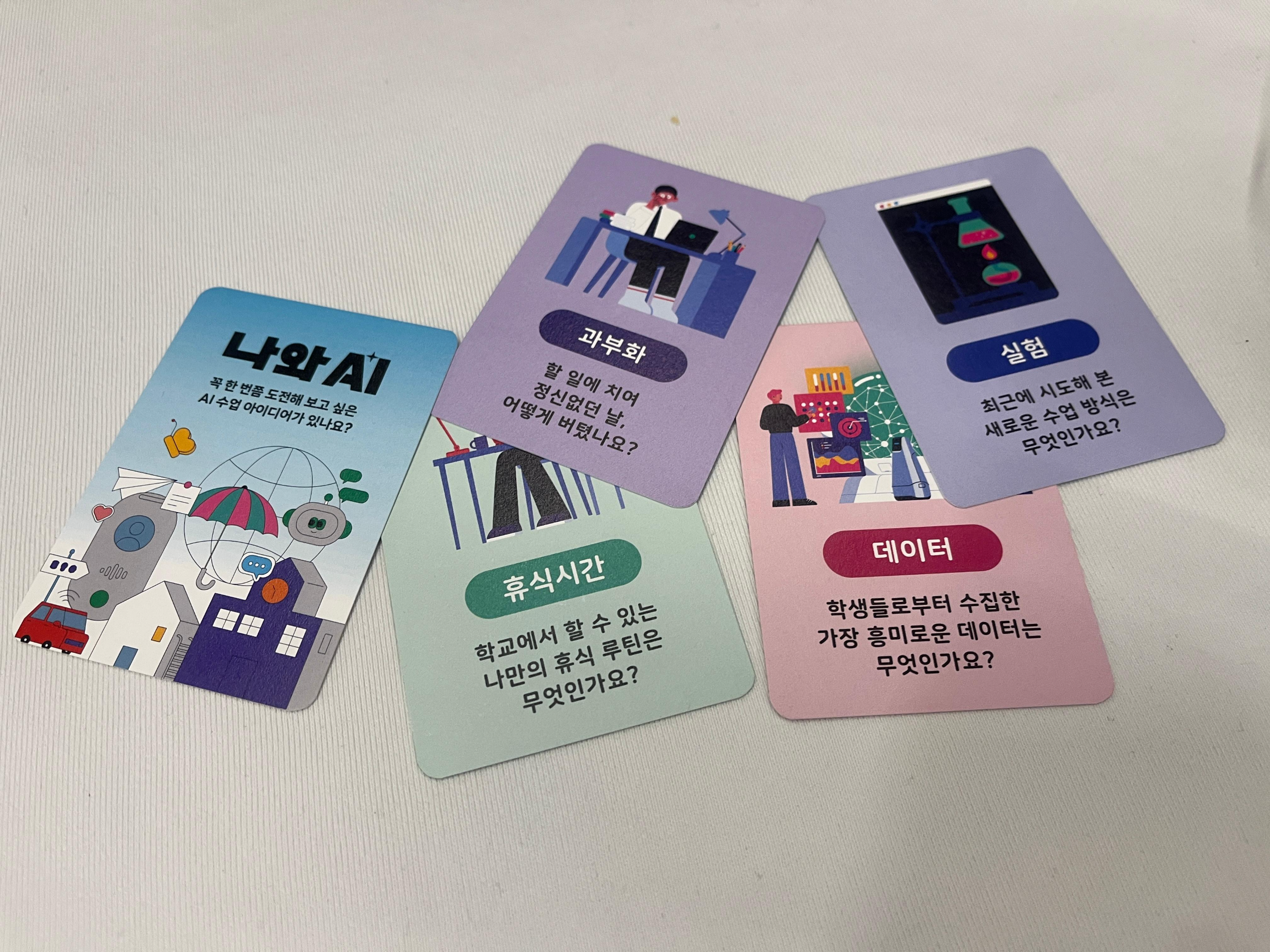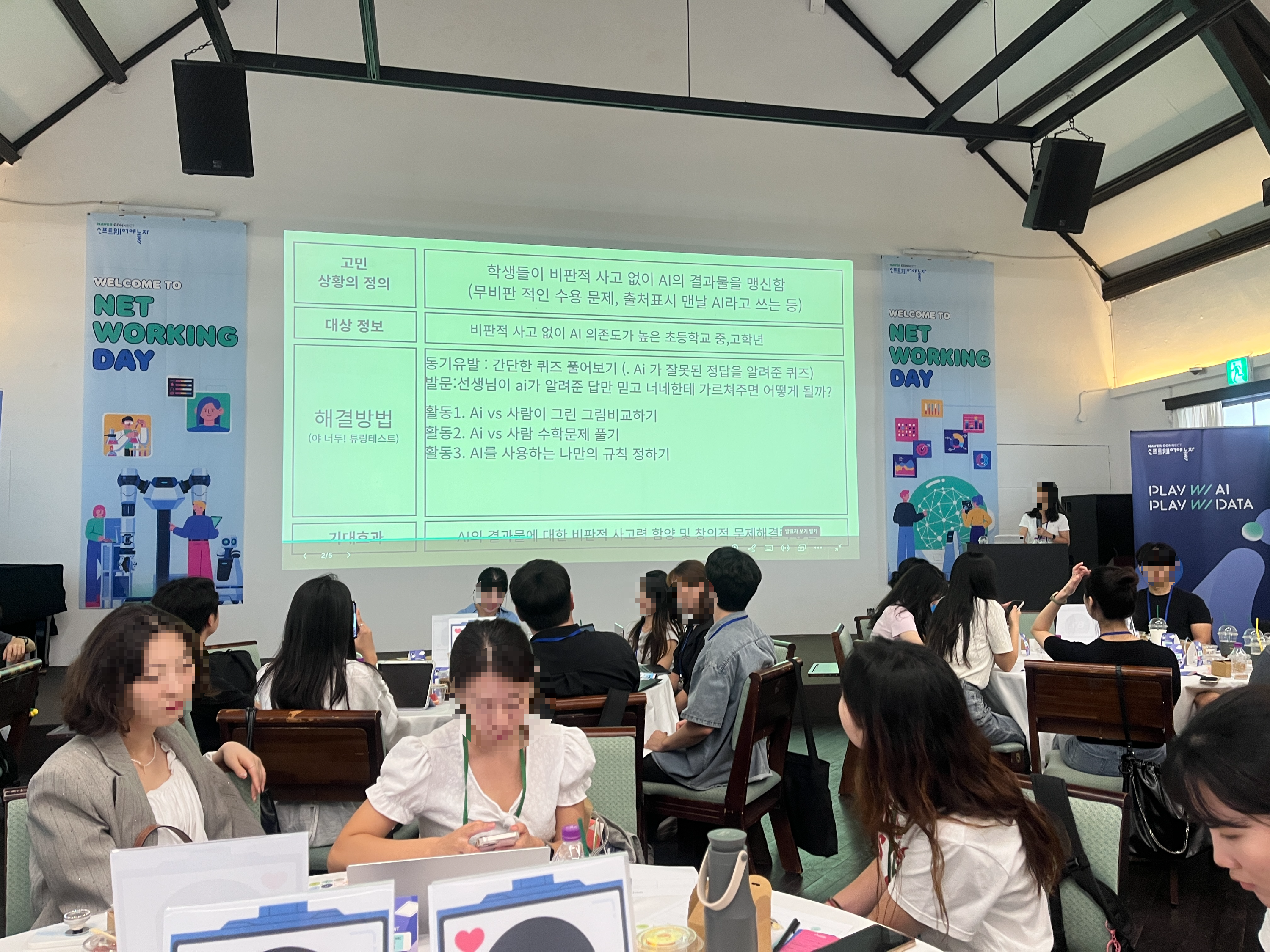 수업을 하면서 어렵다고 느꼈던 점을 어떻게 해결했는지 소개하는 활동이었다. 다른 팀 선생님들과 함께 고민을 나누고 이를 결과물로 만들어 발표까지 하는 활동이었다. 투표를 실시해서 1~3등은 선물 증정까지 있었다. 90% 넘는 팀이 AI 할루시네이션과 관련된 주제를 어려움으로 꼽았다. 공신력 있는 사이트에서 검색을 하게 하면서, 검색의 횟수를 제한하는 토큰제를 제안한 팀이 가장 기억에 남는다.