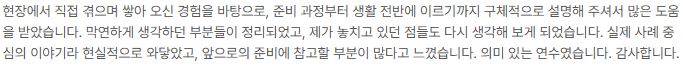 다음은 선생님들이 직접 남겨주신 강의 후기이다.