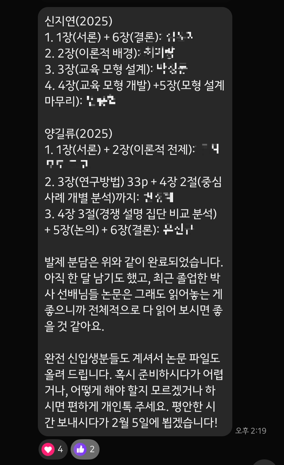 직전 학기에 논문을 제출하고 졸업하는 선배들이 이런 시간을 종강 시즌에 가지는 것 같다.