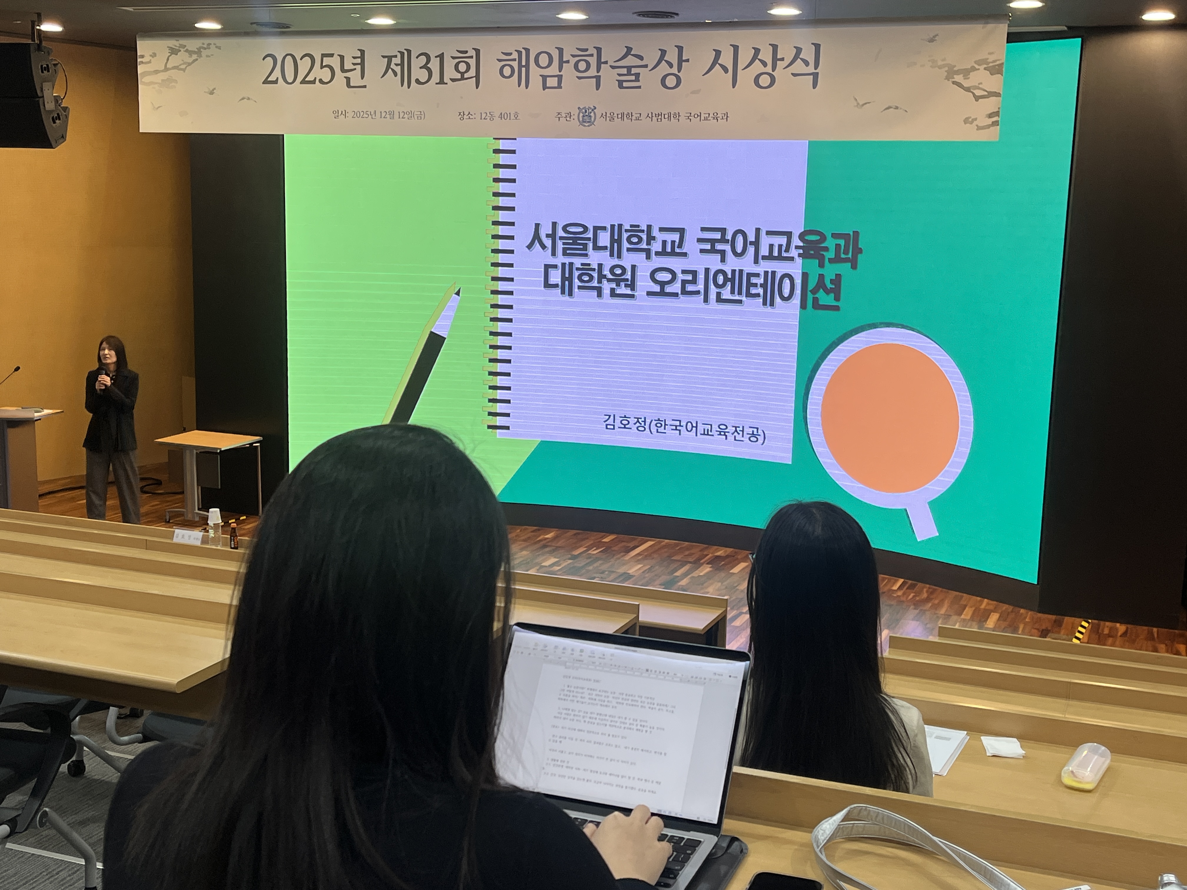 환영 인사와 함께 간단한 오리엔테이션을 한국어교육전공의 김호정 교수님께서 진행해주셨다. 요지는 학사 공부와 석박사 공부의 차이점을 짚으며 석박사 공부를 임하는 마음가짐에 대한 것이었다.