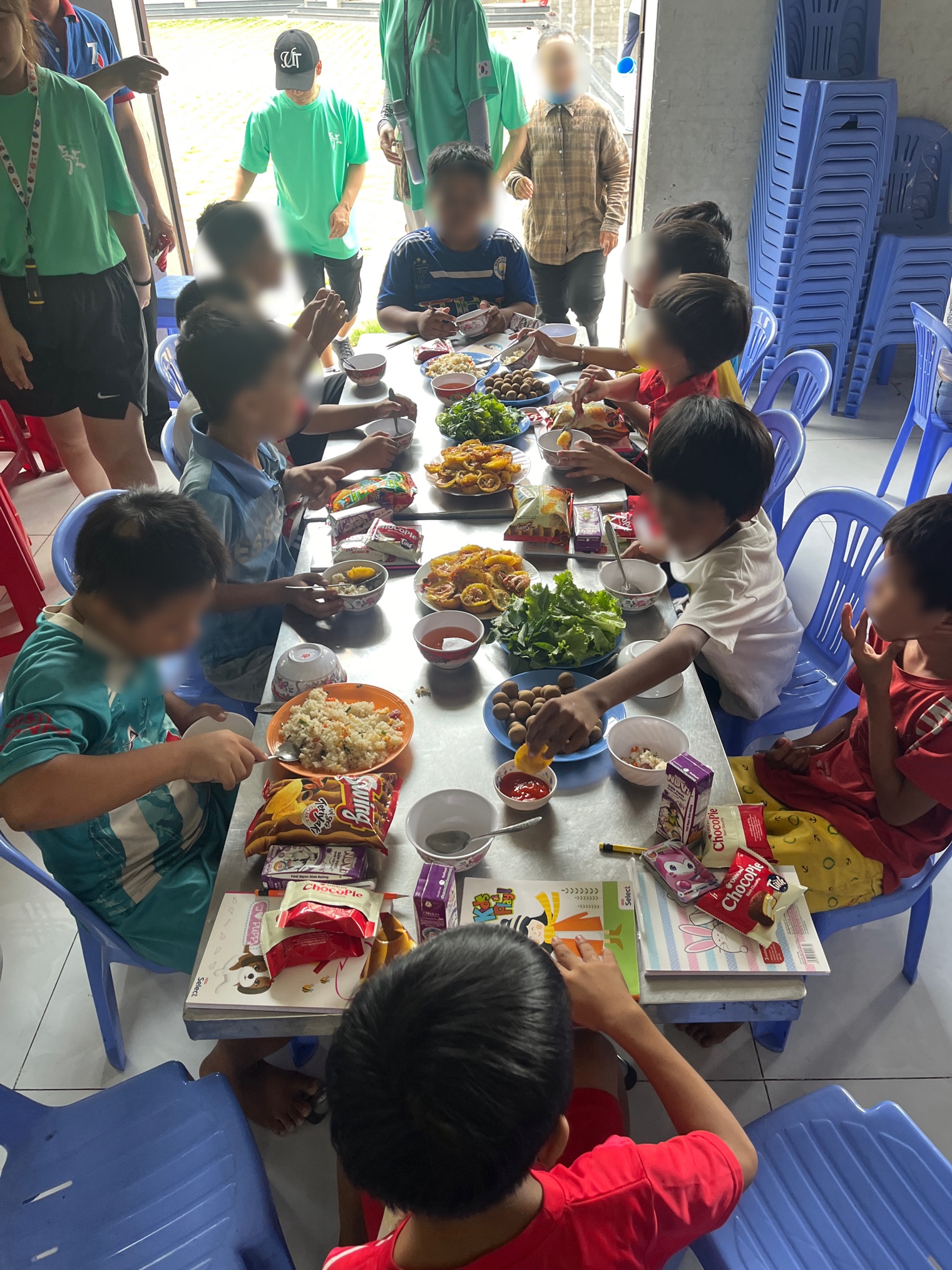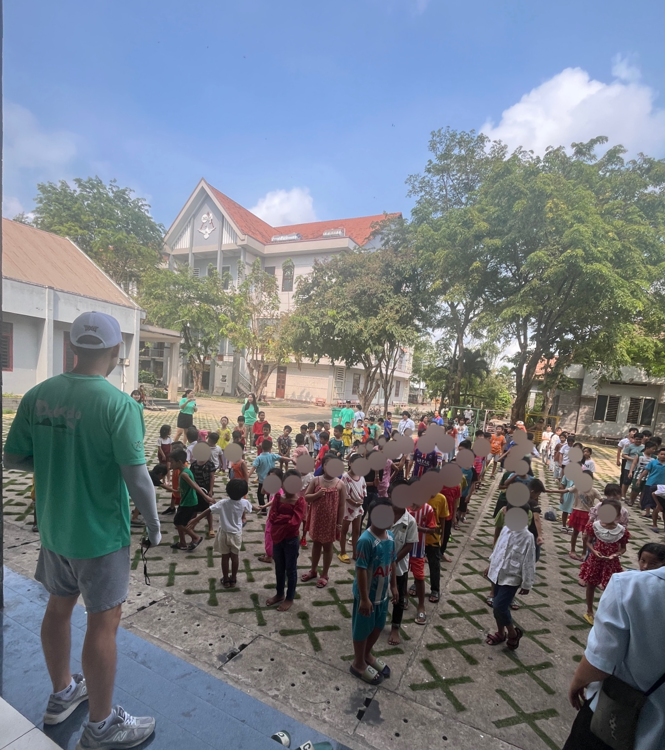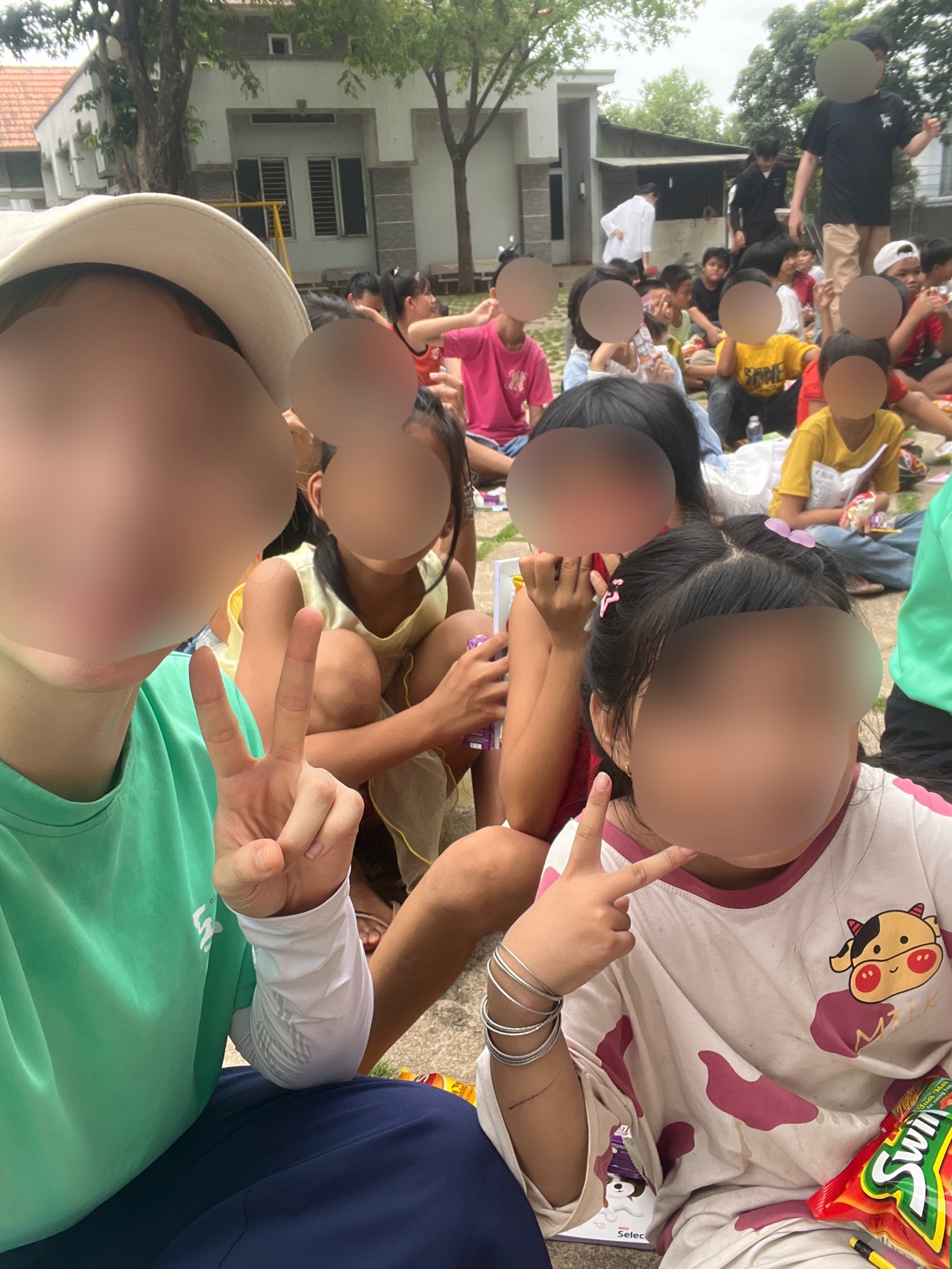 선물은 과자, 필기도구를 준비해갔다. 줄을 서서 받아가는 아이들이 깜언 이라고 이야기하면서 어찌나 감사 인사를 잘 하던지! 마지막으로 아이들과 인사를 나누며 봉사 활동을 마무리 했다.